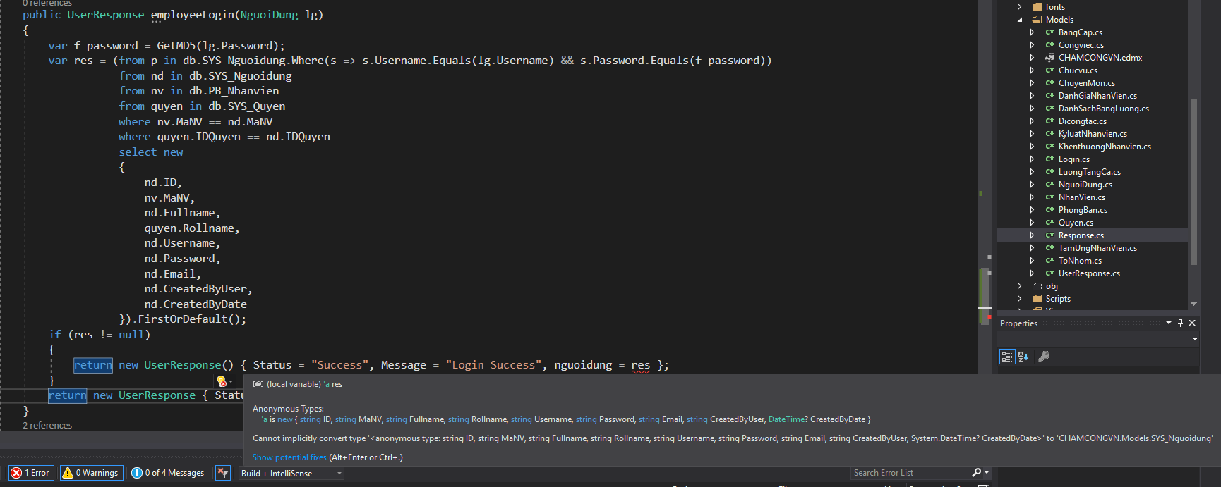 var data = db.SYS_Nguoidung.Where(s => s.Username.Equals(lg.Username) && s.Password.Equals(f_password)).ToList();