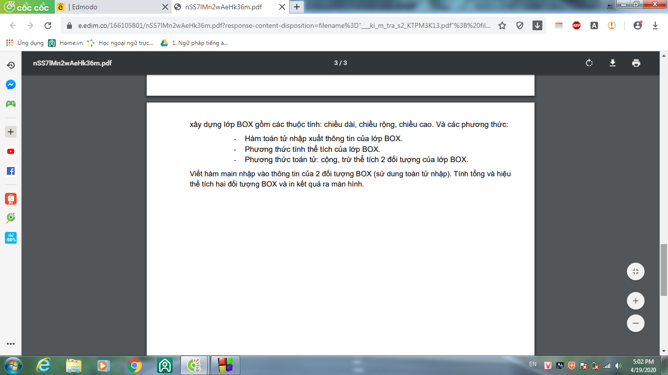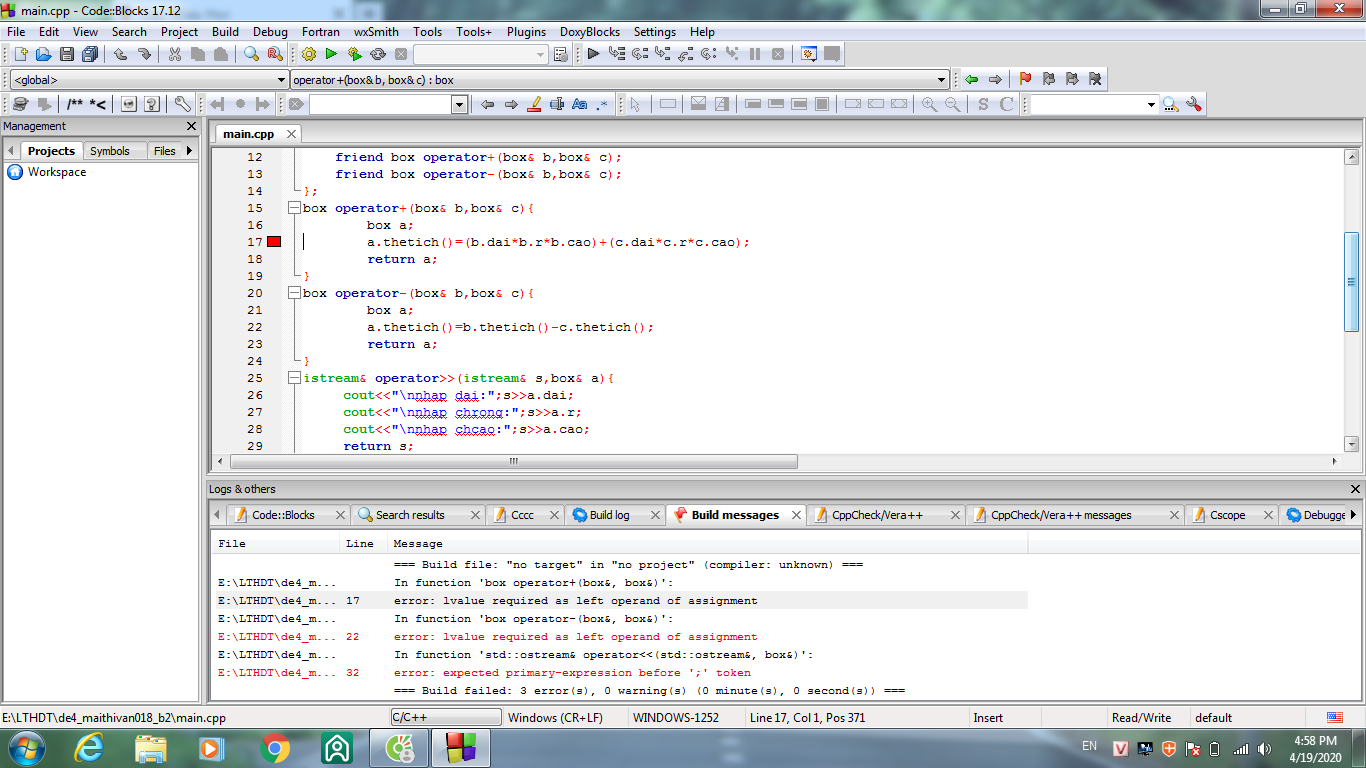 Chả là em muốn cài đặt toán tử tính thể tích 2 hộp nhưng nó cứ bị lỗi như này, anh chị giúp e với