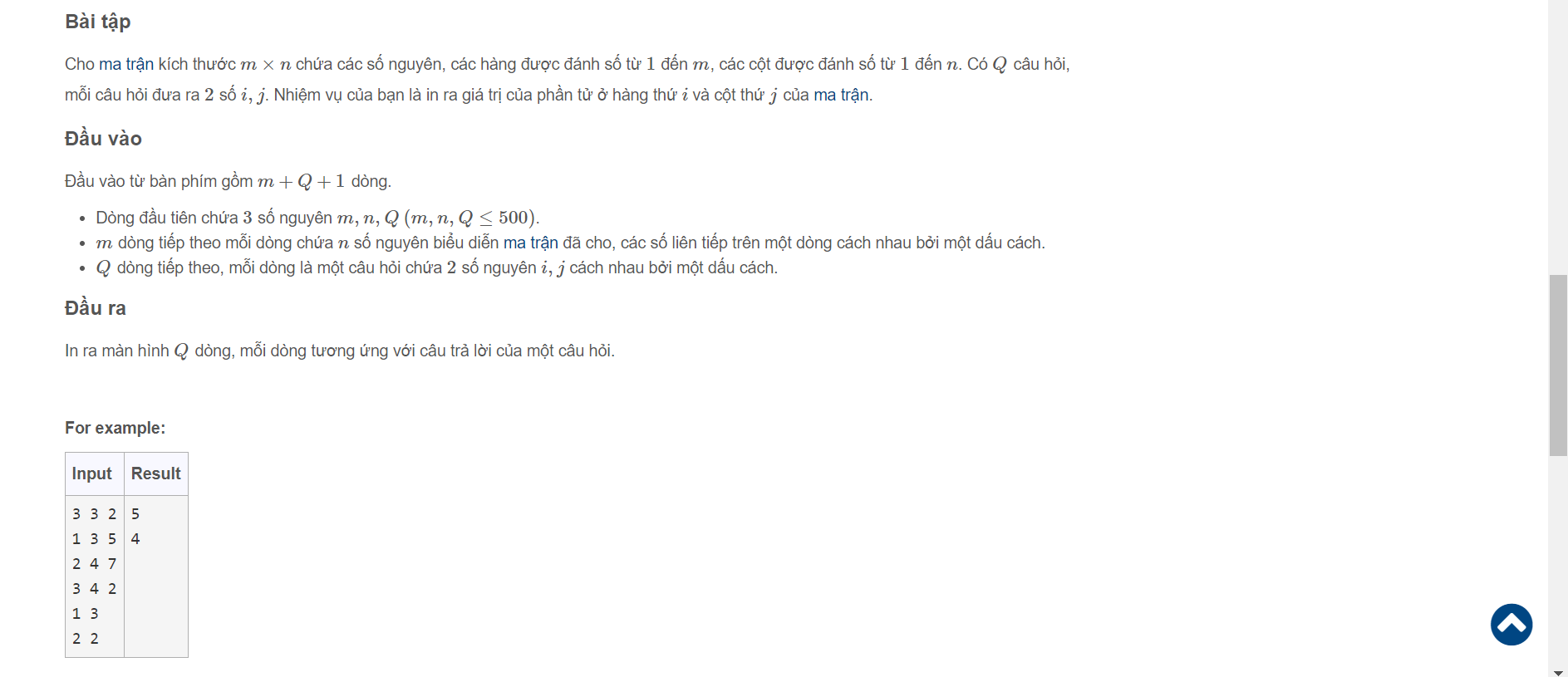 nhập vào Qi,Qj rồi in ra x[Qi][Qj].