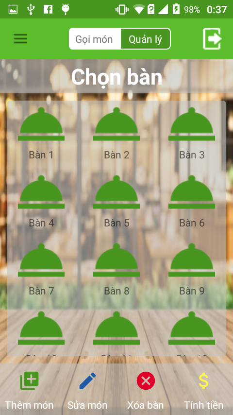 Mấy cái bàn 1 bàn 2… đó mình dùng custom gridview hiển thị nó trong 1 cái fragment.