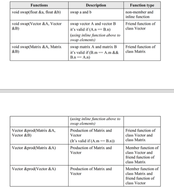 Mình đã có 2 class Vector và Matrix ( do làm bài 3,4) . Bài 5 này là tổng hợp 2 bài trên lại.