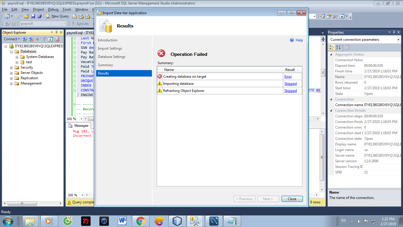Em đang mở .bacpac file thì nó bị lỗi như ảnh dưới đây ( Em sài sql server 2014 ). Em tính mở bẳng microsoft azure nhưng họ bắt đóng phí sau đó em mới được dùng free. Có cao nhân nào cho em thỉnh giáo cách mở file này không ạ.