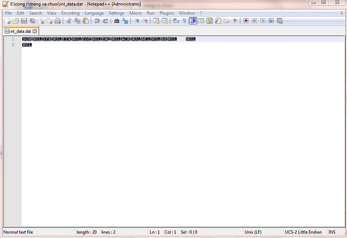 Tôi mở file nhị phân bằng notepad++ nó hiện như vậy ông ơi. Trong file này là 1 dãy số.