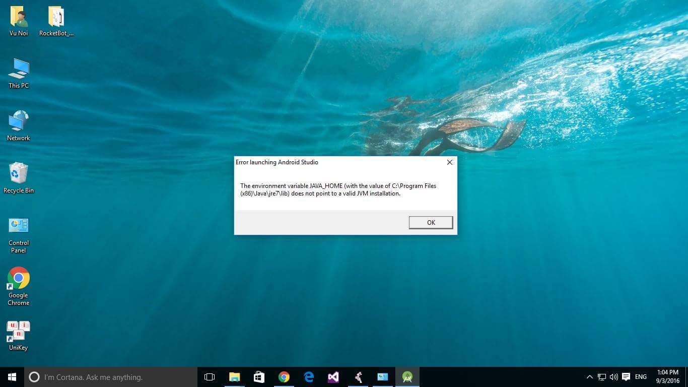 Khi cài android studio có ai bị lỗi ko tìm thấy vùng jvm ko…giúp mình fix vs