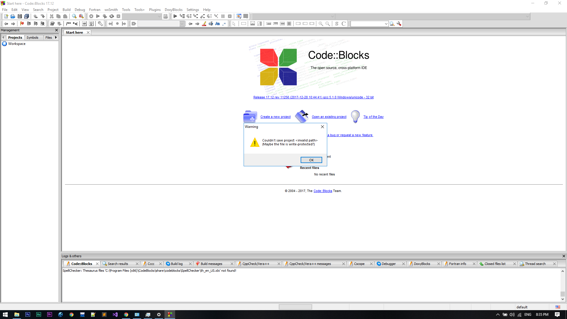 Lưu một tập tin có đường dẫn sai thì báo thế thôi. Nhấn OK.