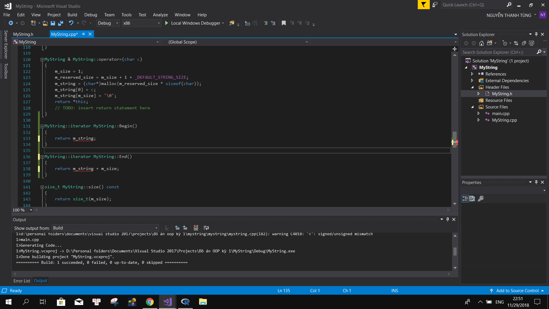- Em cài đặt các toán tử iterator sao ko cài đặt ngoài file này có nghĩa bình thường em khai báo ở file MyString.h và cài đặt MyString.cpp nhưng đối với iterator thì ko dc ?