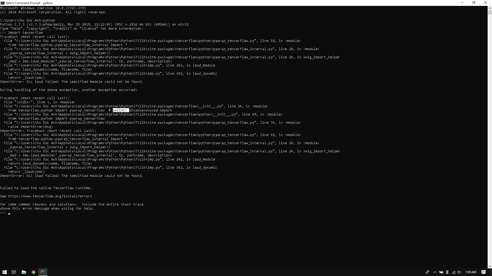 Có vẻ như phiên bản Python 3.7 không được hỗ trợ.