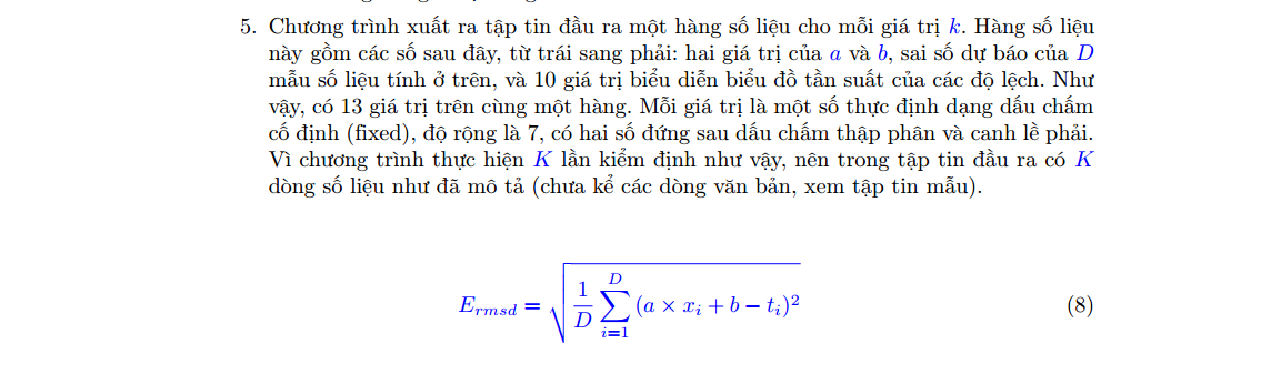 Đọc output xem người ta yêu cầu gì, tính từng giá trị của nó.