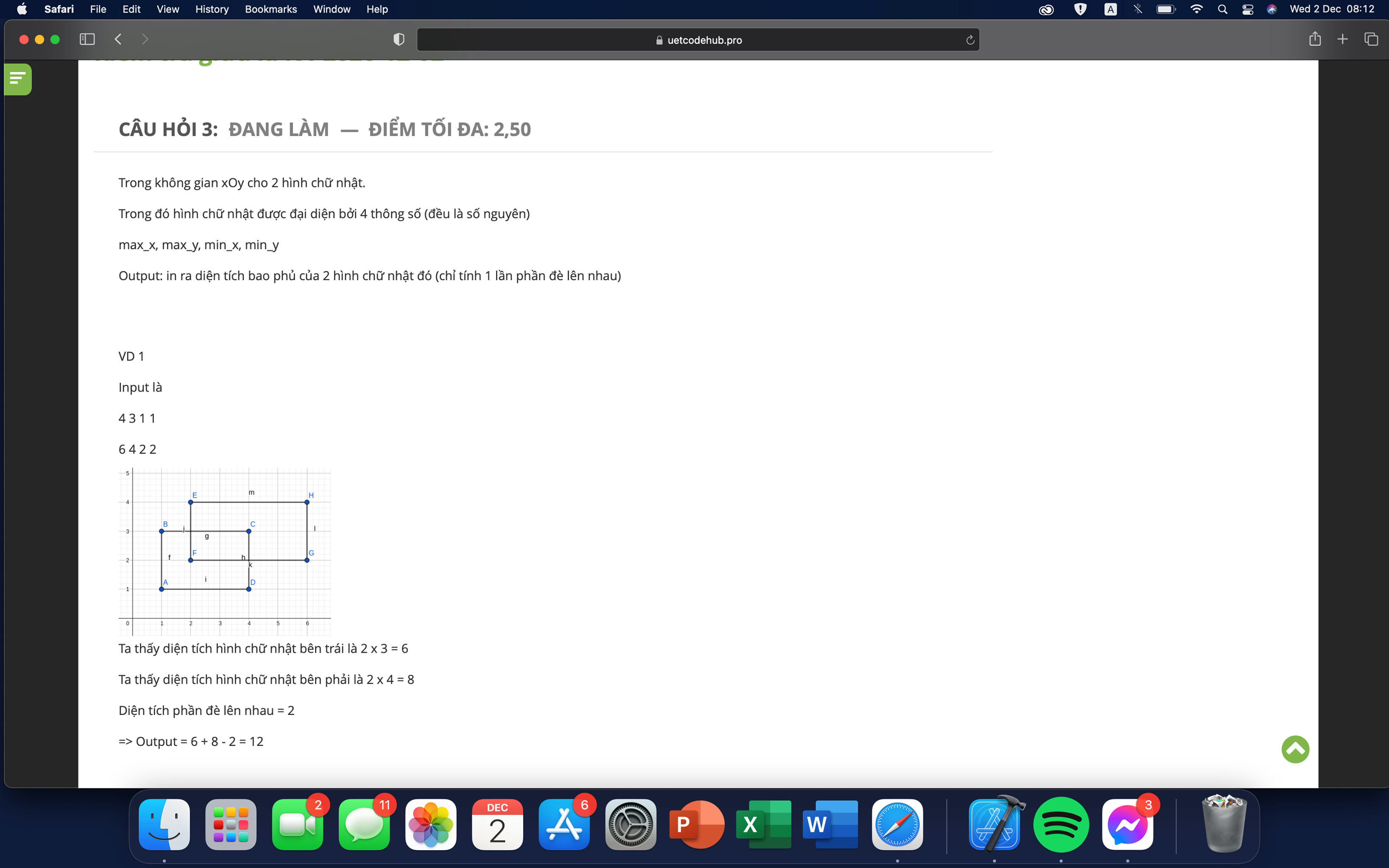 - Ta có công thức tính diện tích hình chữ nhật thứ nhất là: S1 = ((|max_x1 - min_x1|) * (|max_y1 - min_y1|)