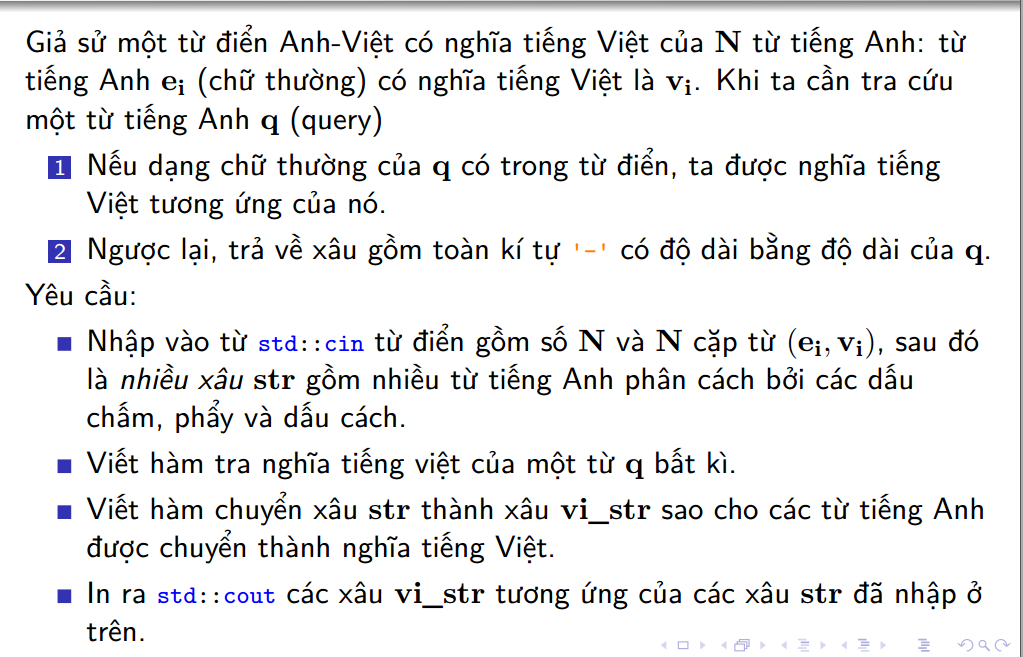 trong cpp có map đó. Đơn giản nhất là sử dụng map< string,string> bạn có thể tìm hiểu thêm. Hoặc tốt hơn là bạn dùng cấu trúc trie để lưu và tìm kiếm từ.