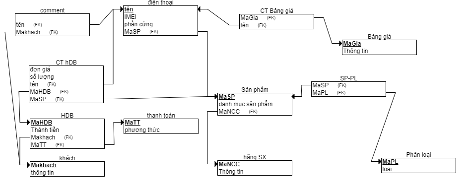 Cần góp ý biểu đồ mối quan hệ thực thể của website bán điện thoại