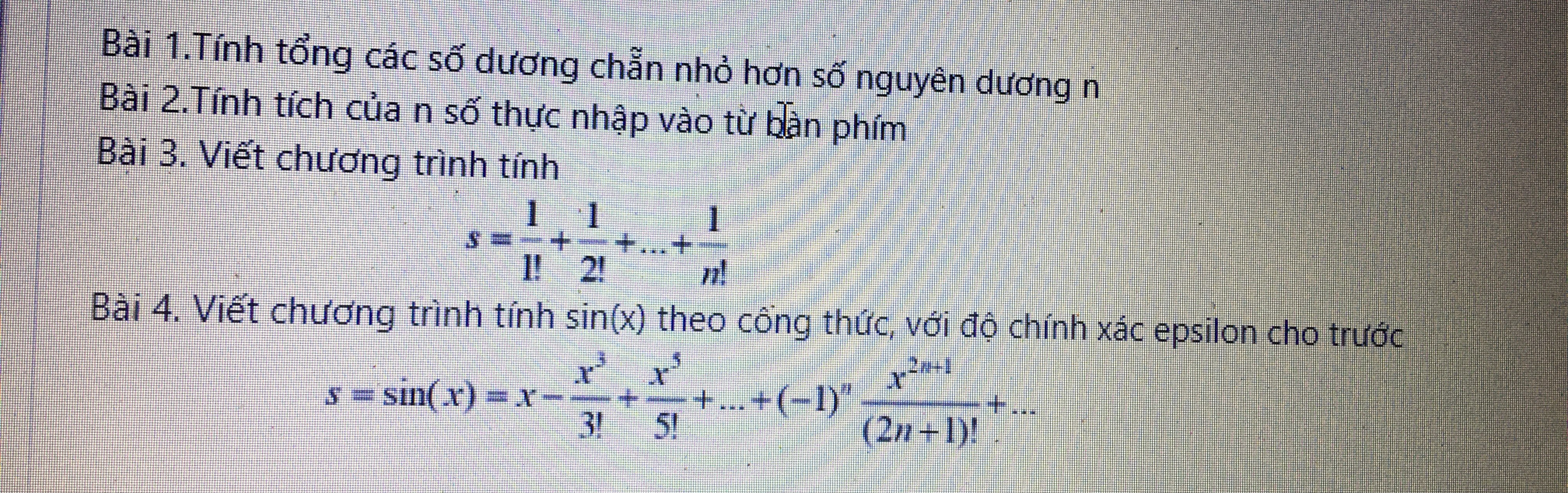 pow()trong thư việnmath.h. Vẫn có giai thừa, chia và cộng. Công thức tổng quát đã có, chỉ cần áp dụng.