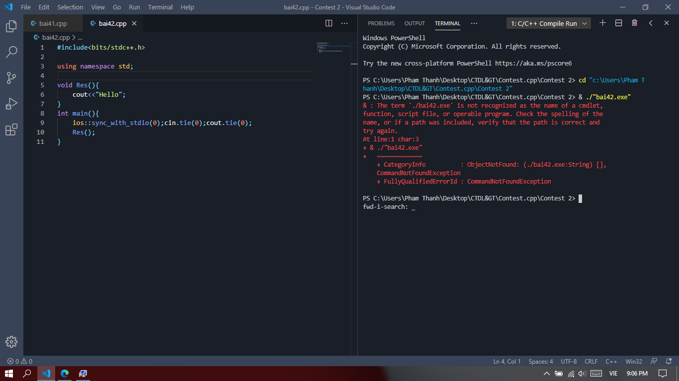 Mọi người có thể giúp mình fix lỗi này khi compile trên powershell không ạ.