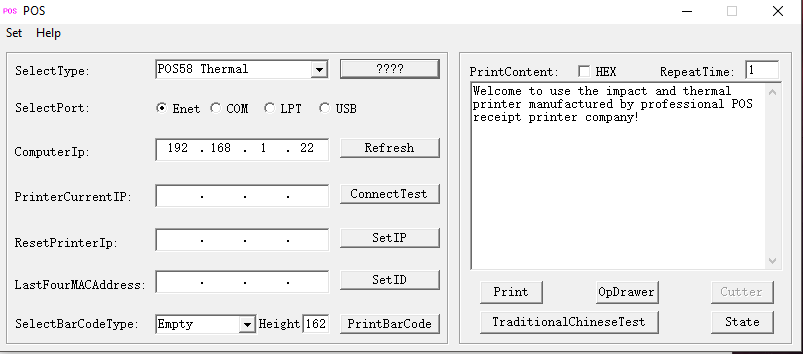 - Sử dụng phần mềm PC chuyên cho việc cấu hình lại IP máy in biên lai để reset