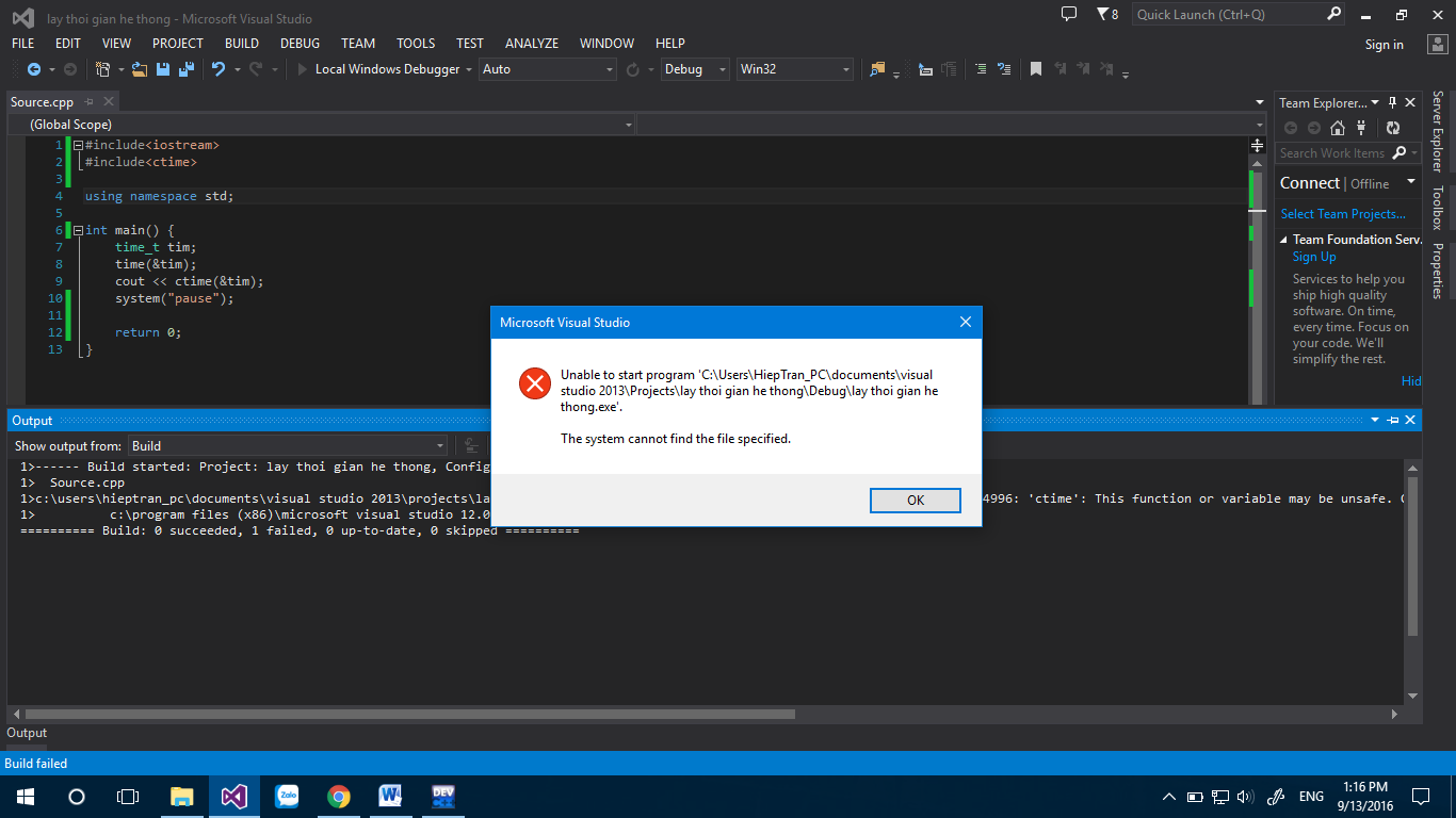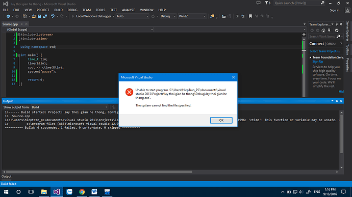 do VS bắt lỗi unsafe của ctime, cái này từ 2012 trở đi là nó bắt rồi