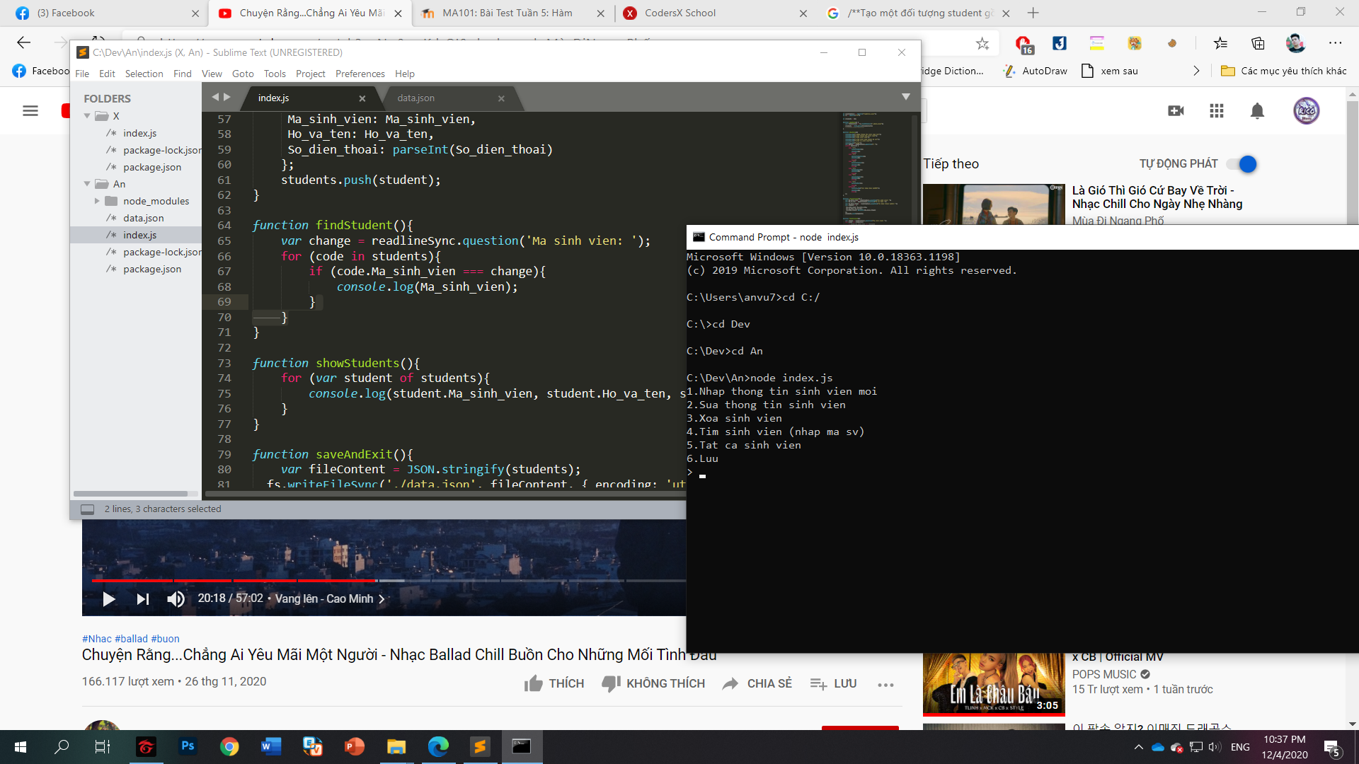 Đối với xóa sv và sửa sv thì cần tìm chỉ số của phần tử sv trong mảng (danh sách sv), sau đó sửa, xóa như phần tử trong mảng.