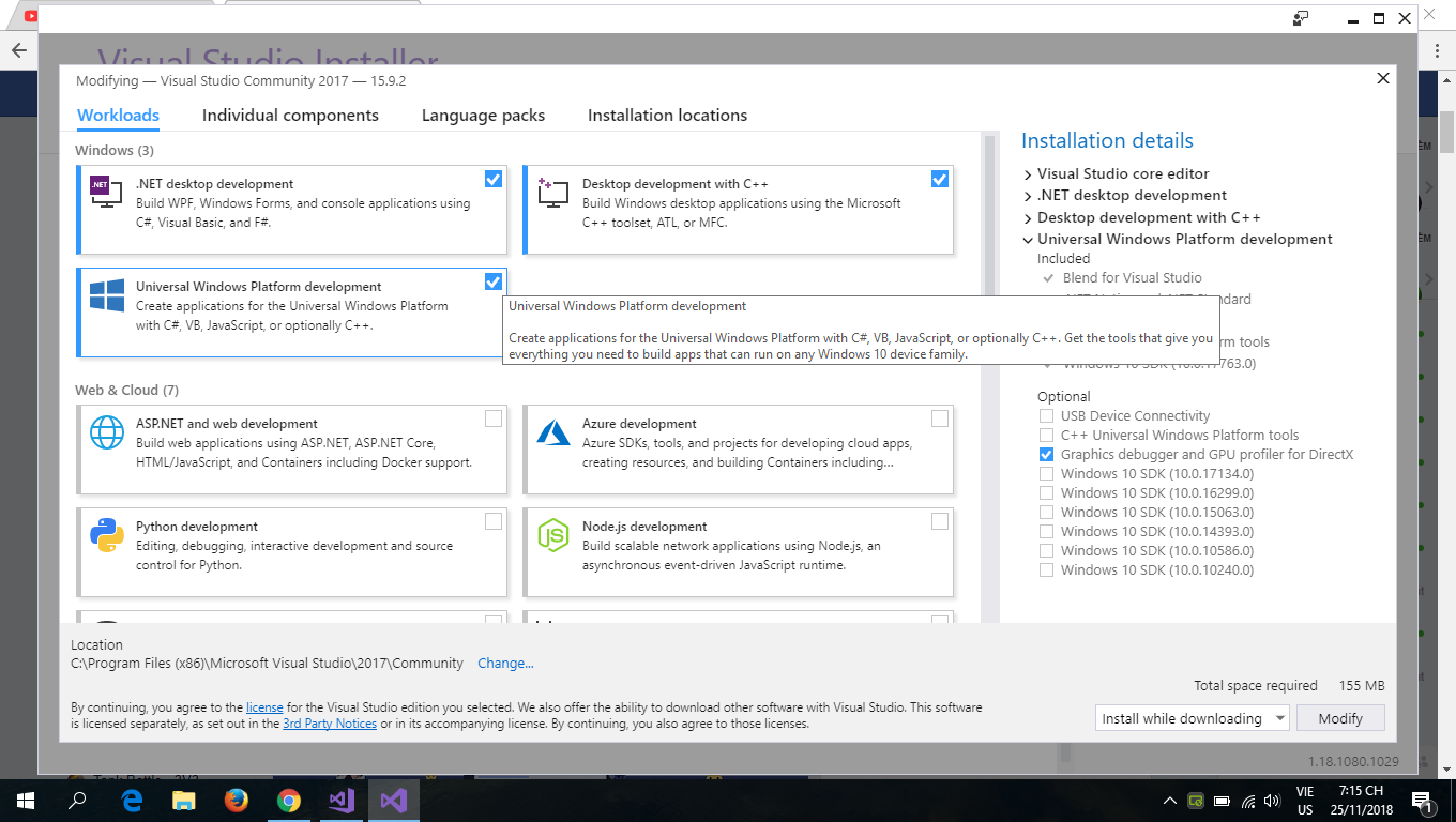 Chọn Workload trên Visual Studio để lập trình phần mềm bằng C#