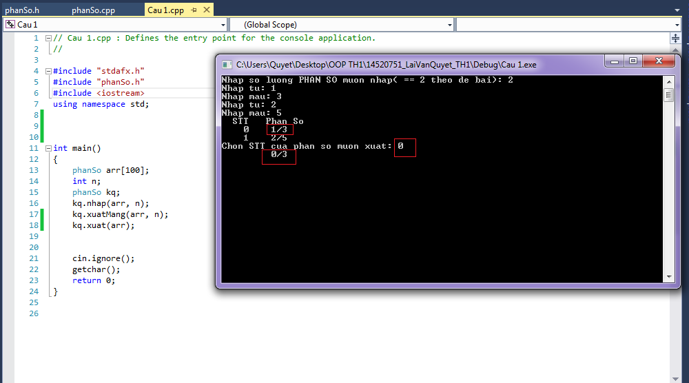 debug tí là ra. Hàm UCLN (a,b) = (1,3) -> r = 1 -> gọi UCLN(3,1) (a,b) = (3,1) -> r = 0 -> return a = 3???