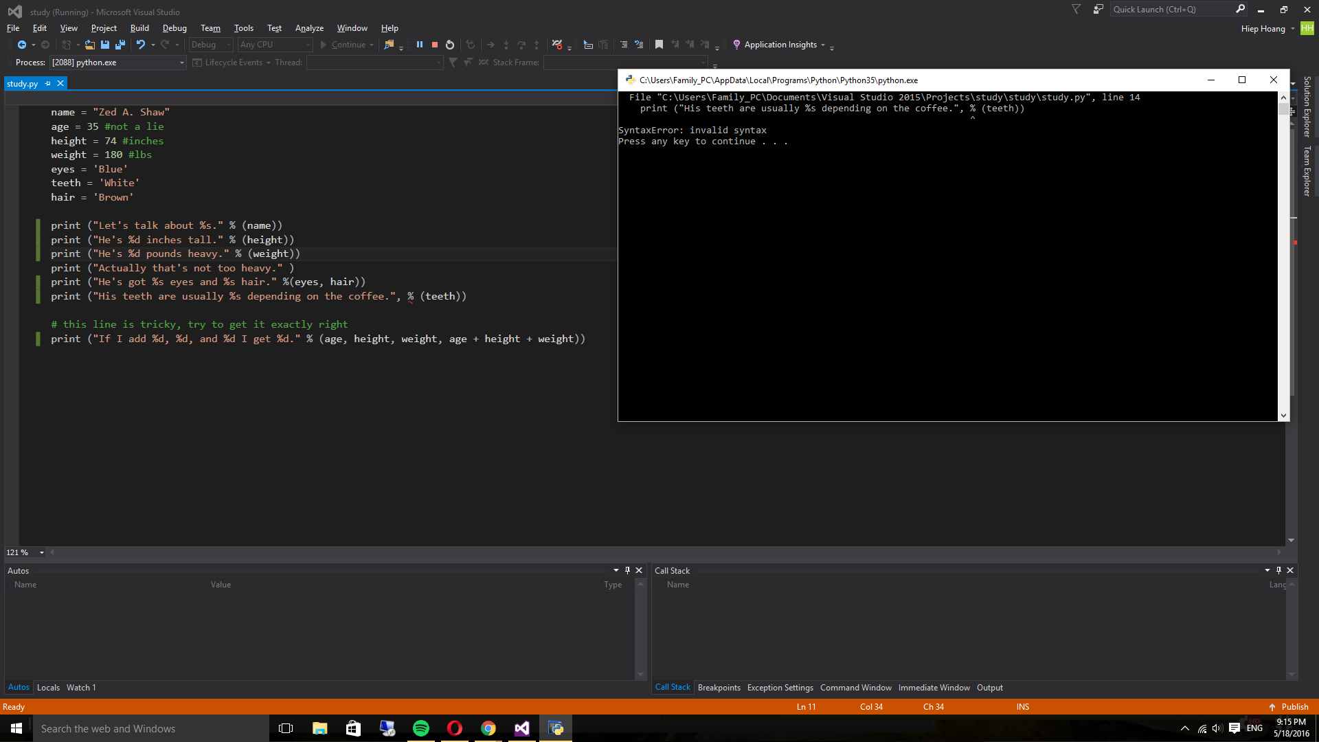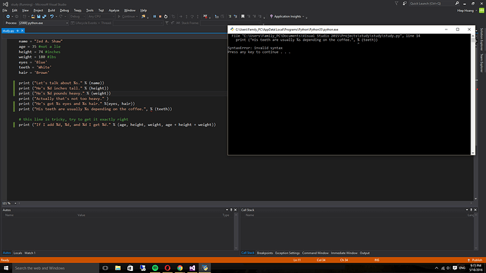 % ở trong ngoặc của hàm print. Nếu không nó sẽ hiểu là kết quả hàm print % x nào đó là không đúng.