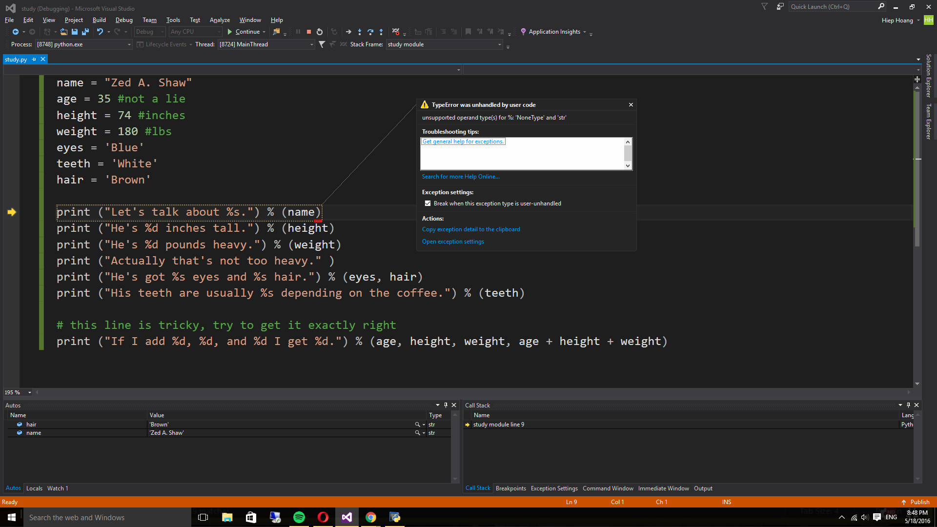 Code bị lỗi "unsupported operand type(s) for %" khi format string