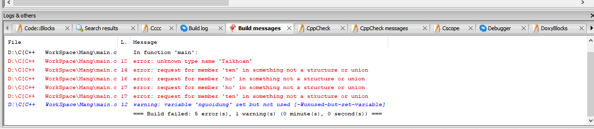 Các bác cho e hỏi cùng đoạn code như trên chạy trên dev C++ thì ok nhưng khi chạy trên Code::Block bị lỗi ntn là sao ạ. Và làm sao để có thể chạy được bình thường trên ode::Block ạ