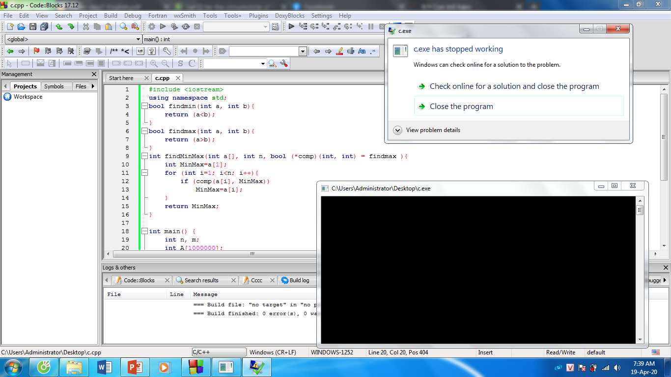 int findMinMax(int a[], int n, bool (*comp)(int, int) = findmax ){