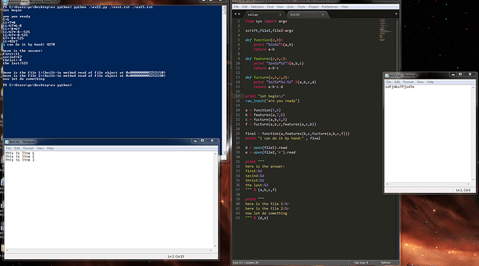 em đang học learn python the hard way đến bài 22, viết được cái ex22.py như trên hình . chạy thì được nhưng mà đến chỗ here is the file thì nó in ra cái gì đó em cũng ko biết. cho em hỏi là em sai ở đâu, sai cái gì, ■■■ làm sao