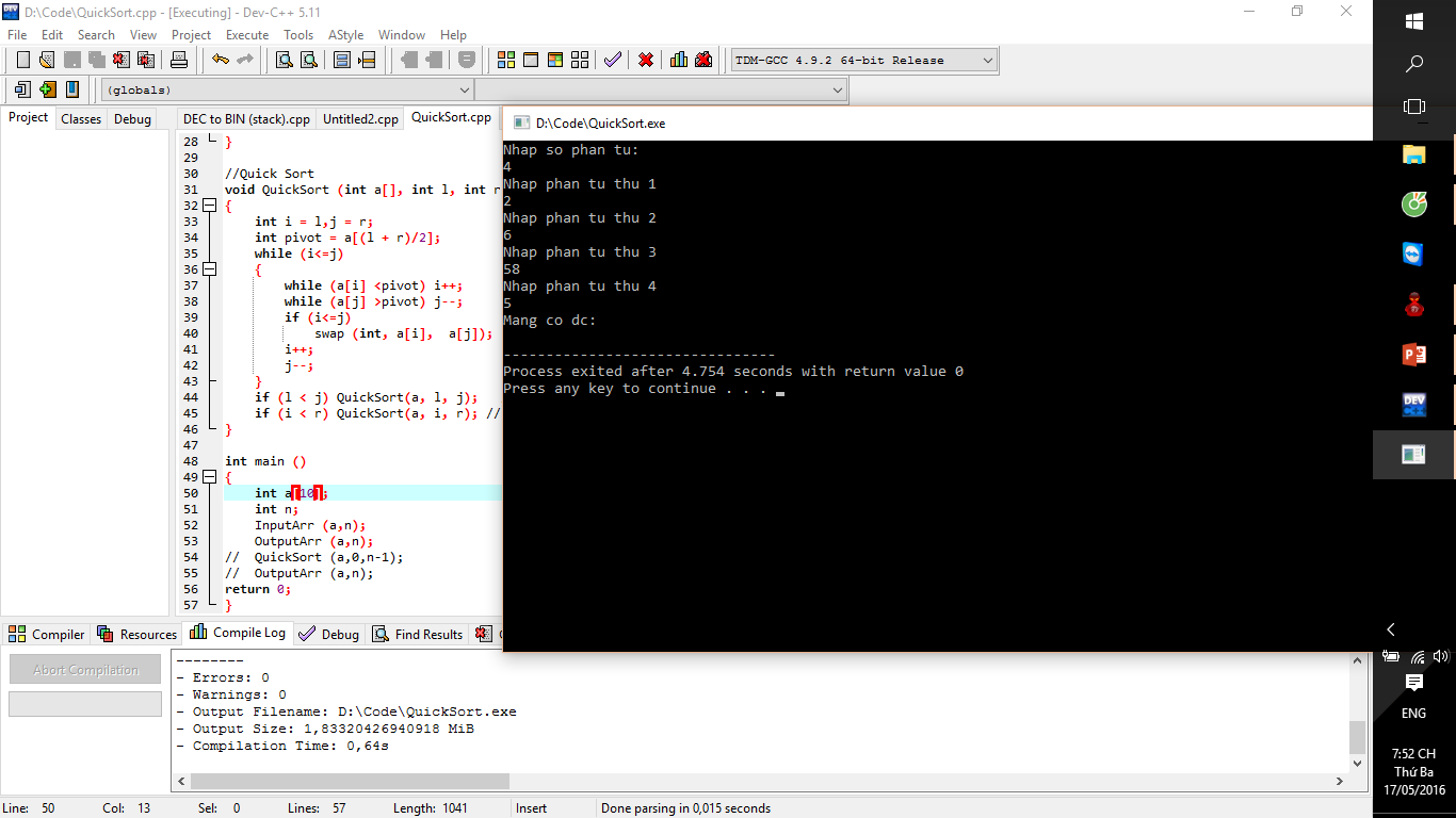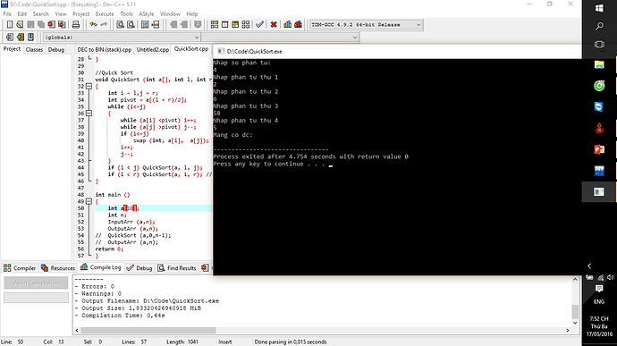 if (l < j) QuickSort(a, l, j); // lam lai voi mang a[l]....a[j]