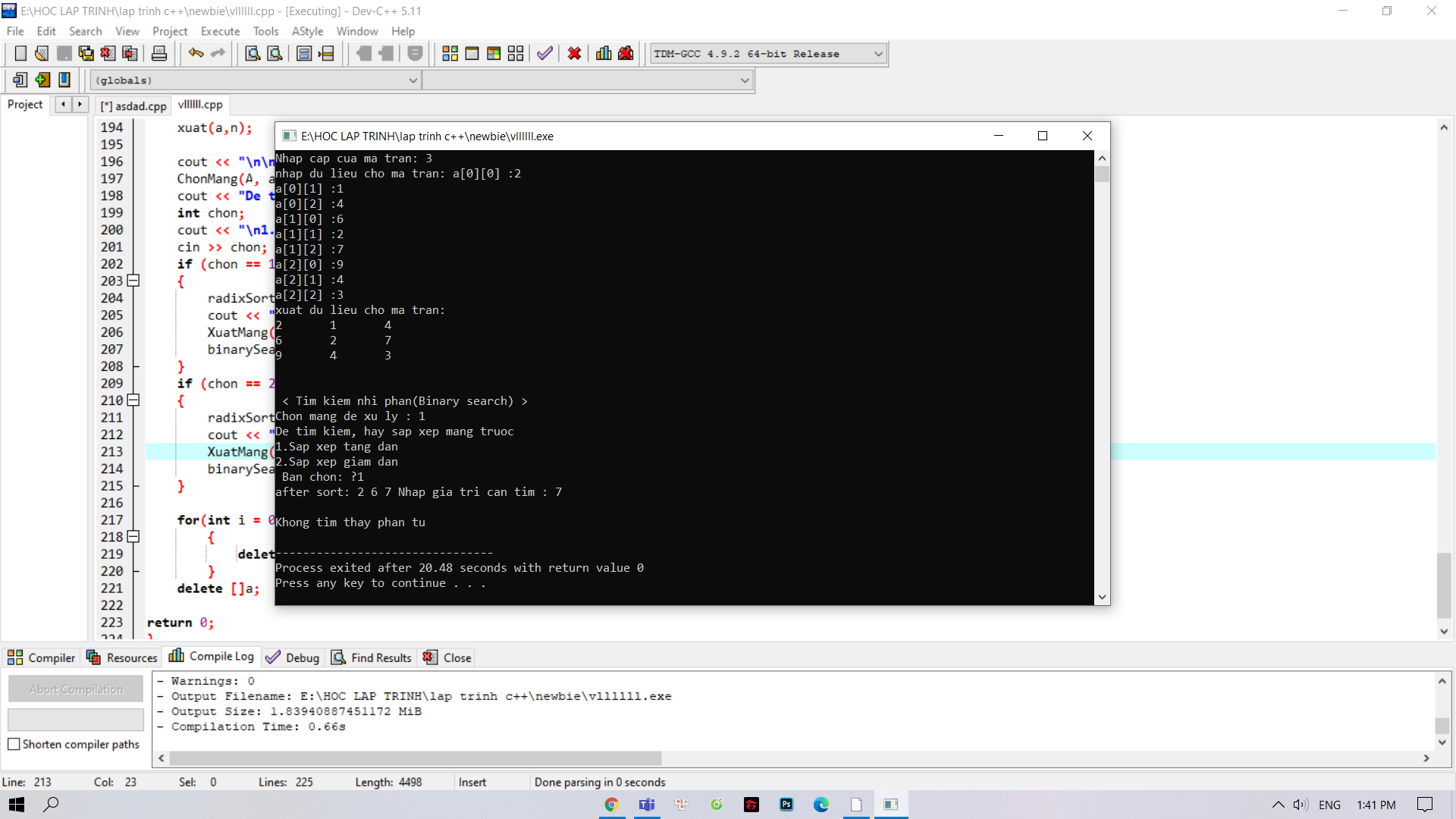 Đề bài là tìm kiếm phần tử từ mảng X của ma trận vuông cấp m bằng phương pháp binary search(nếu tìm thấy, in ra vị trí và giá trị phần tử tìm được: A[i] = …)