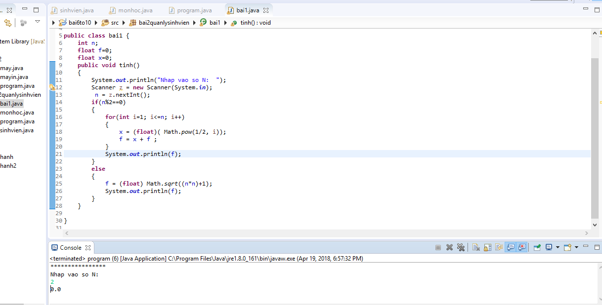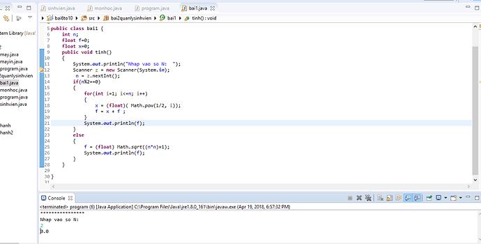 các anh cho em hỏi bài dưới đây em sai chỗ nào mà tất cả số n em nhâp vào kết quả đều ra 0 với ạ @@. EM cảm ơn trước.