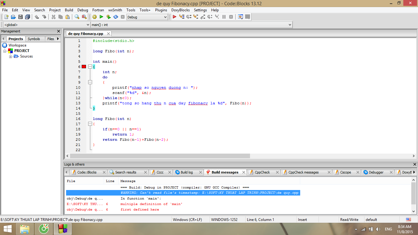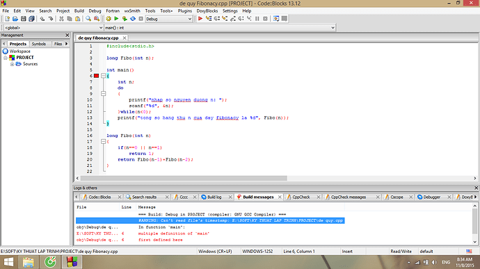 hình như còn 1 file de quy.cpp bạn kiểm tra lại xem, chỉ đặt 1 file cpp trong project thôi.