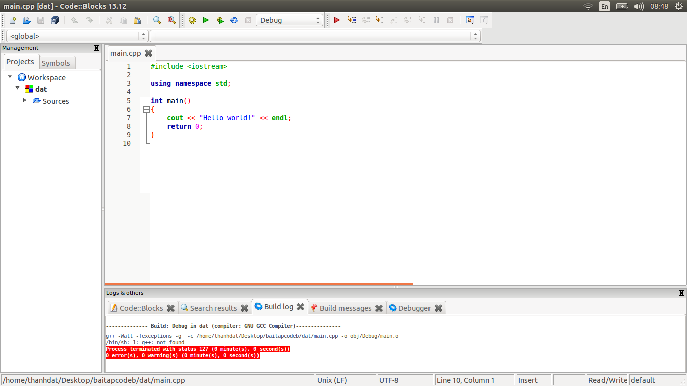 Codeblocks báo g++ not found trên ubuntu?