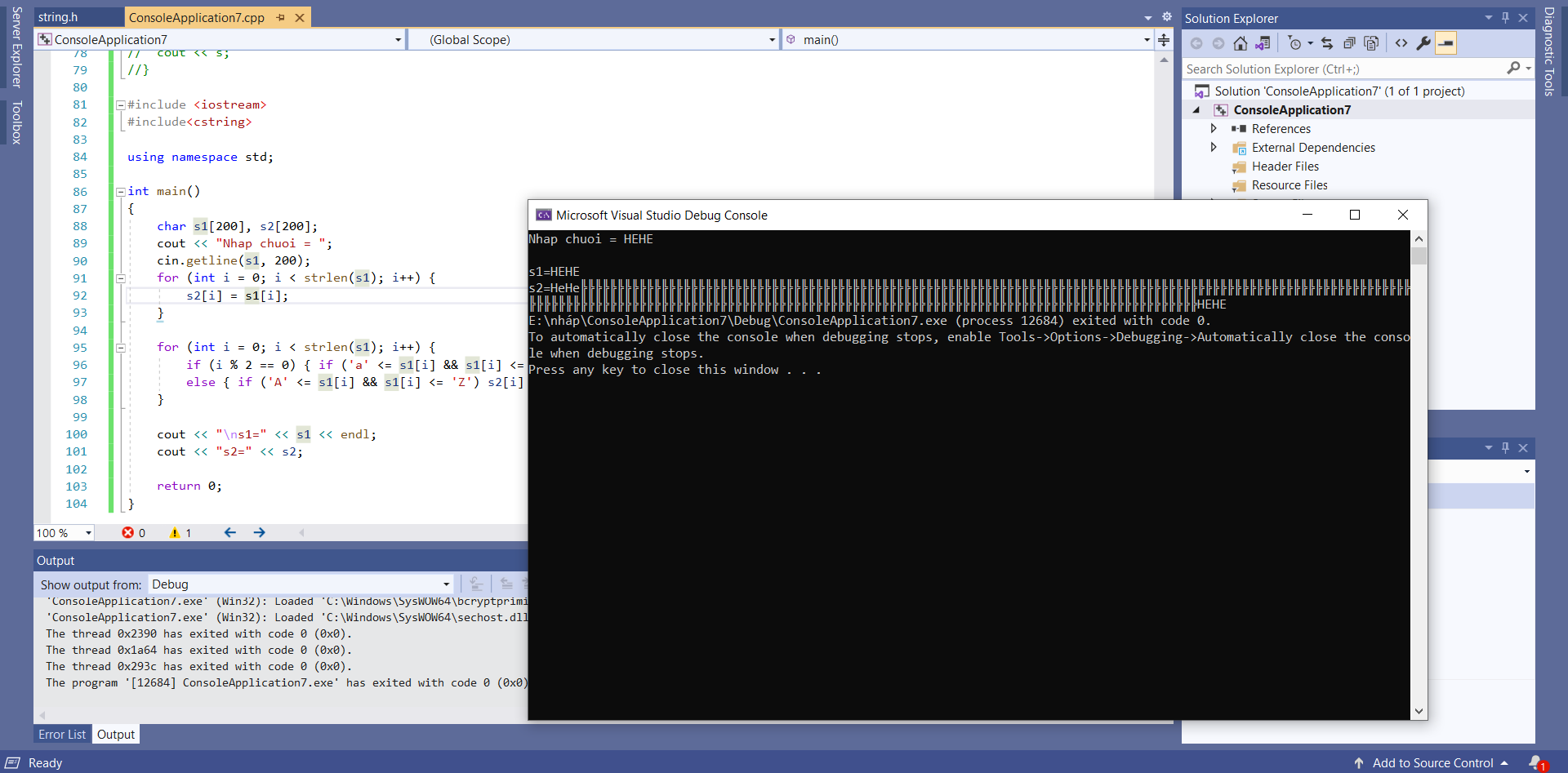 Đề bài là cho 1 chuỗi , sửa chuỗi đó sao cho , vị trí chẵn thì viết hoa , vị trí lẻ thì viết thường .