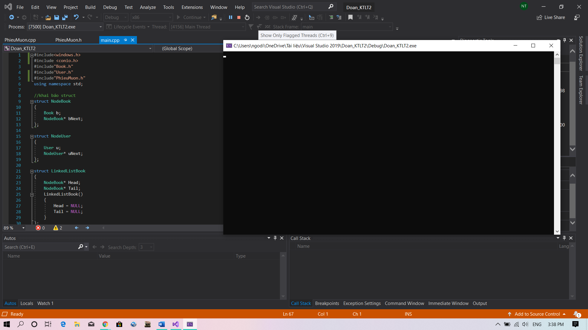 Cho mình hỏi có phải bị nghẽn do khai báo nhiều class không? Debug chạy vẫn bình thường cho tới khi thêm biến Phieumuon và gọi hàm viết sẳn trong class. Hàm ngắn cout bậy bạ thì vẫn chạy. Nhưng gọi hàm để xử lý file thì đen xì v :’< ai biết khắc phục xin chỉ giúp.