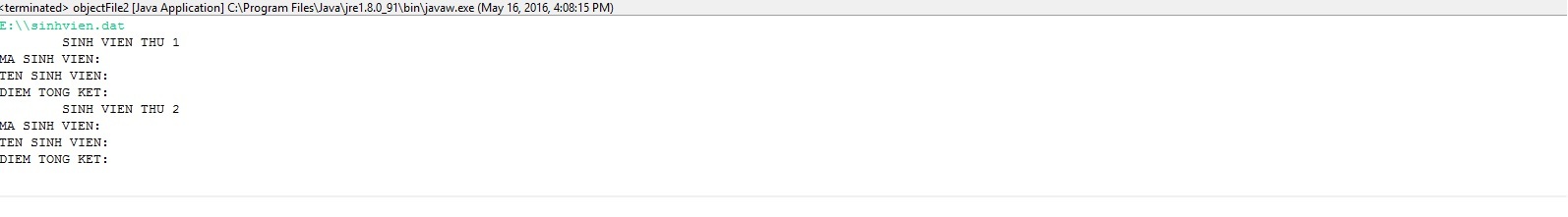 System.out.println("\tSINH VIEN THU "+(i+1));