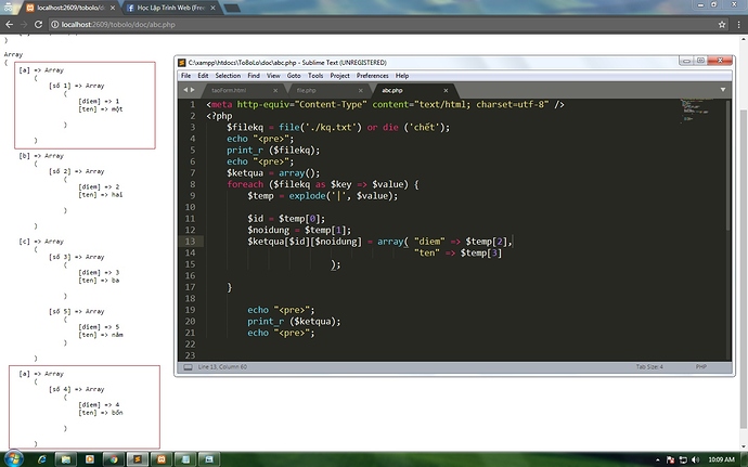 Đọc dữ liệu từ file và lưu nó vào mảng nhưng khi lưu thì cái [a] nó lại có 2 cái còn [c] thì lại bình thường. Khi truy đến $ketqua[‘a’] thì nó lại hiện [số 4], còn cái [số 1] lại không có. Giờ giải quyết cái này sao ạ?