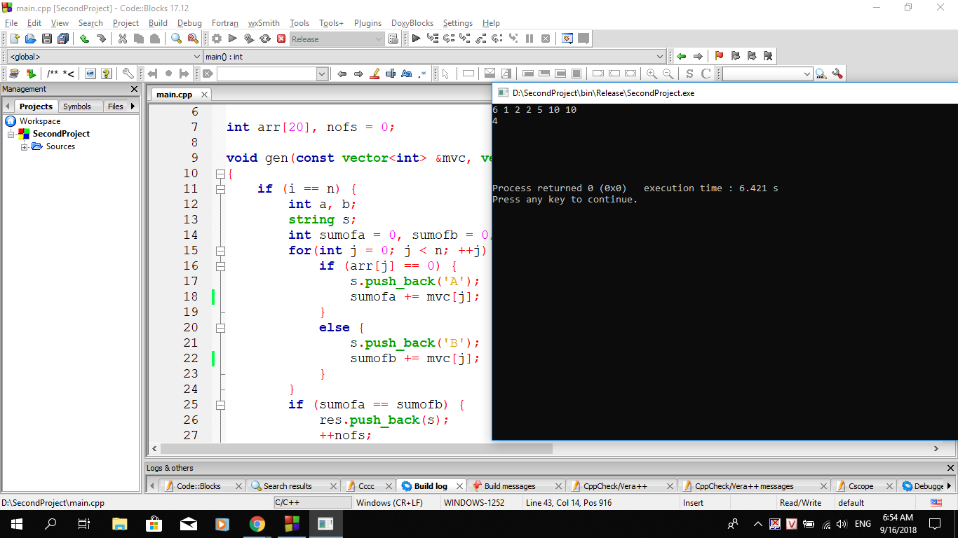 Độ dài dãy nhị phân được sinh ra là n. Sau khi sinh ra xong, ta sẽ kiểm tra nếu số tiền mà A nhận được = số tiền mà B nhận được thì thêm dãy kết quả vào một vector<string>.