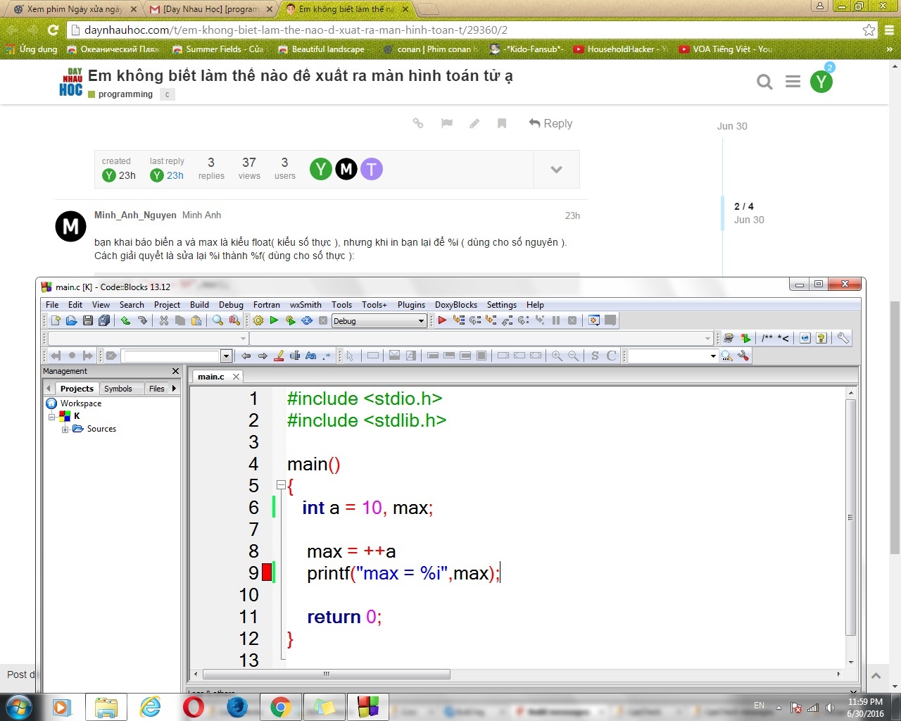 Thêm dấu ; vào sau max=++a kìa bạn ơi
