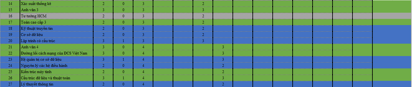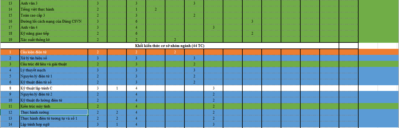 Đây là chương tình học cho kì sau của bên Kĩ Thuật Máy Tính, các phần em để Xanh Lam là các học phần không trùng với CNTT,