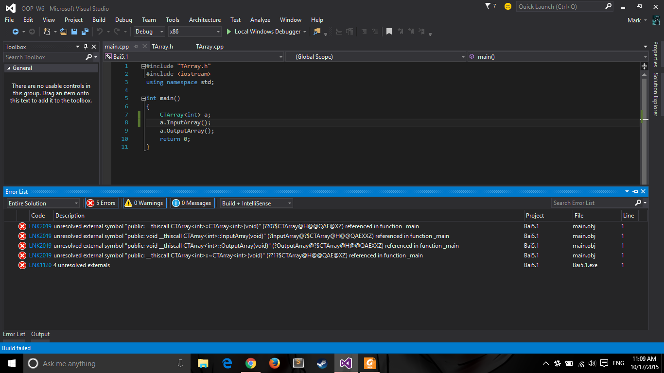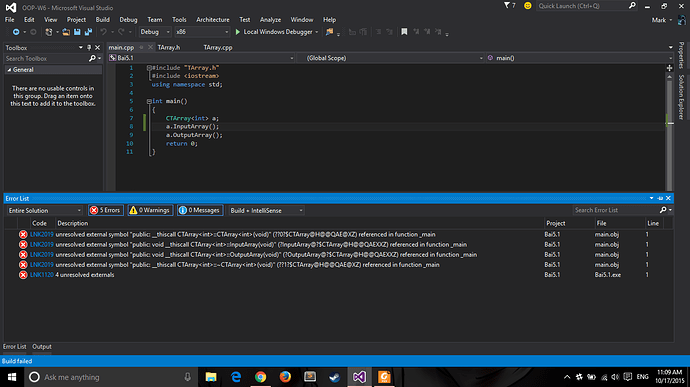đã tìm ra được cách giải quyết là thêm dòng template class CTArray<int>; vào file .cpp thì được cơ mà có ai có cách giải quyết khác không ạ ?