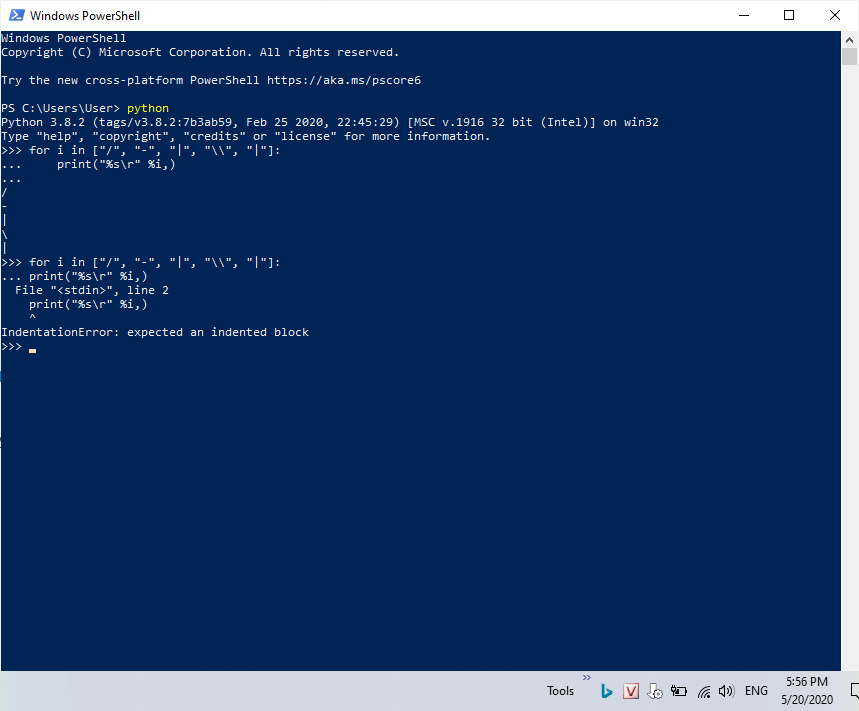 for i in ["/", "-", "|", "\\", "|"]: