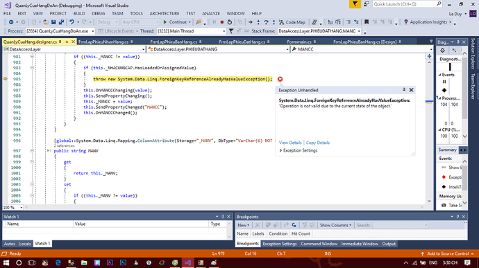 Khi em sửa thông tin của khóa ngoại trên Form thì bị lỗi như thế này. Ai biết fix lỗi giúp e được không ạ! Em cảm ơn!