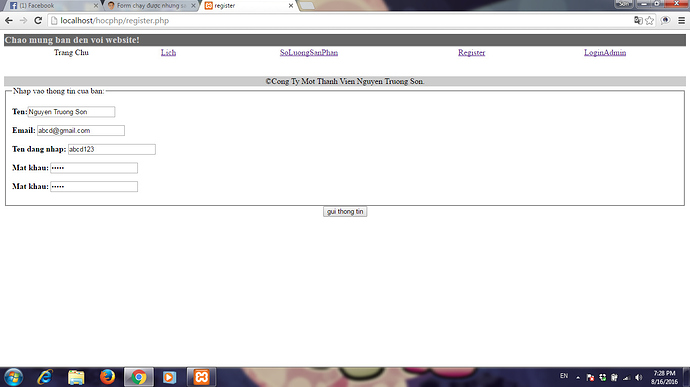 Form chạy được nhưng sao lại không gửi thông tin không được?