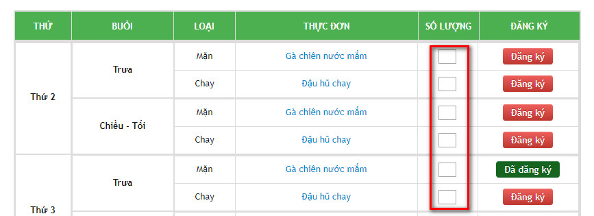 khi click vào button Đăng ký nó chỉ thêm được table " ChiTietThucDon" nhưng còn cột số lượng không lựu được. Làm sao để thêm được cột “số lượng” vào phần Dăng ký . Nhờ mọi người giúp ( có thể code giúp mình tốt quá ). Cảm ơn nhiều.