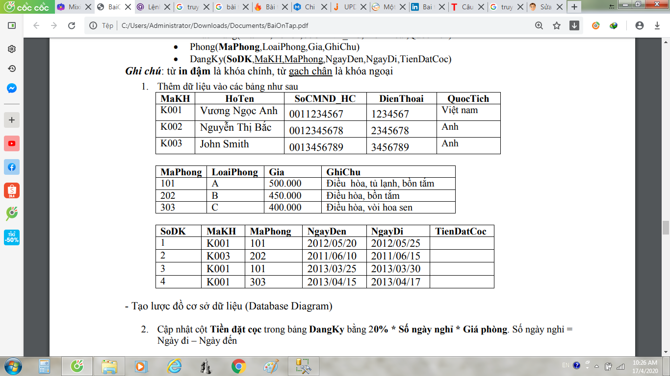 Giúp đỡ bài tập SQL