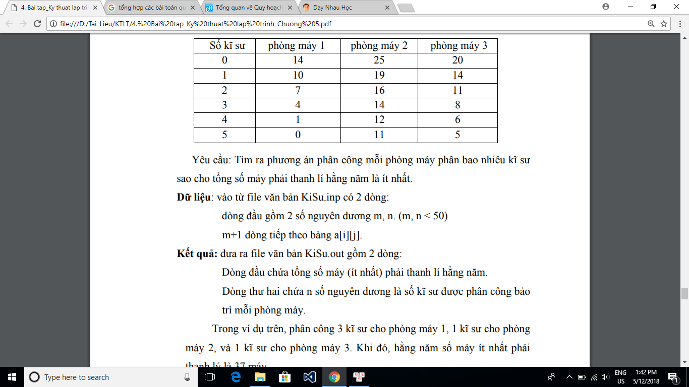 máy. Bảng ví dụ dưới đây với m = 5 (kĩ sư) và n = 3 (phòng máy).