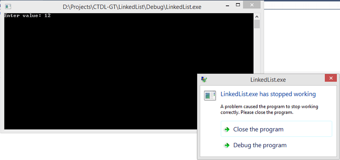 Yêu cầu của đề bài là nhập vào danh sách liên kết các số nguyên dương. Ở trên là đoạn code của mình, nhưng không hiểu sao lại bị lỗi sau. Các bạn giúp mình sửa lỗi với.