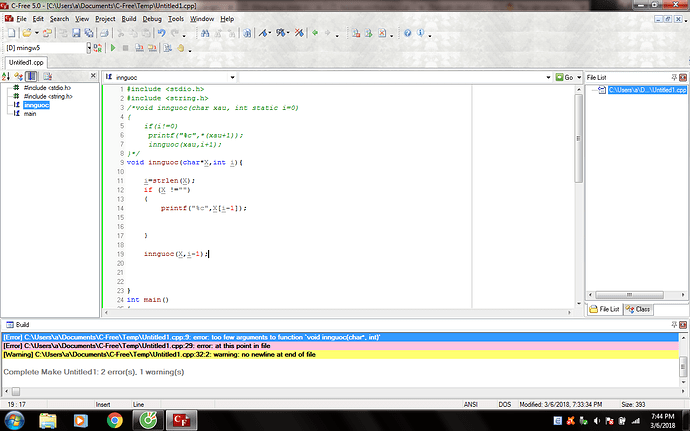 Giúp sửa lỗi hàm in ngược xâu bằng đệ quy