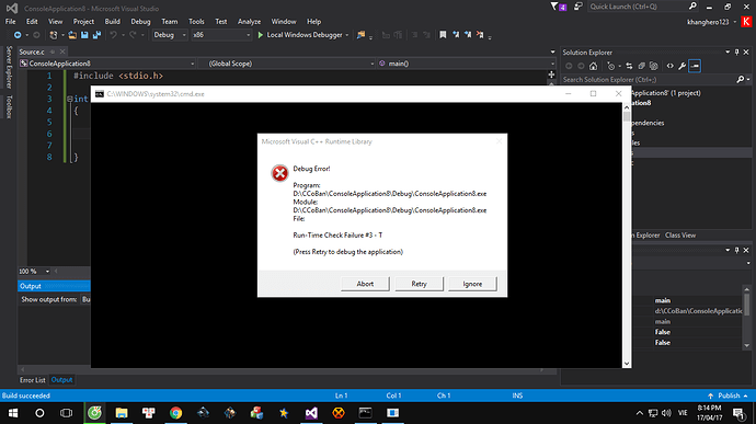 Mình dùng hàm scan f trong visual studio, lúc build thì thành công hết,lúc chạy nó hiện lên thế là sao ? Ai giúp mình với