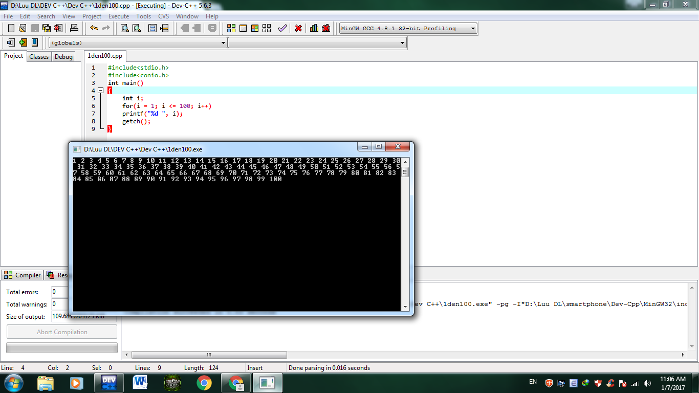 Bạn viết thử cho mình đoạn code in ra các số từ 1 -> 100 xem nào?